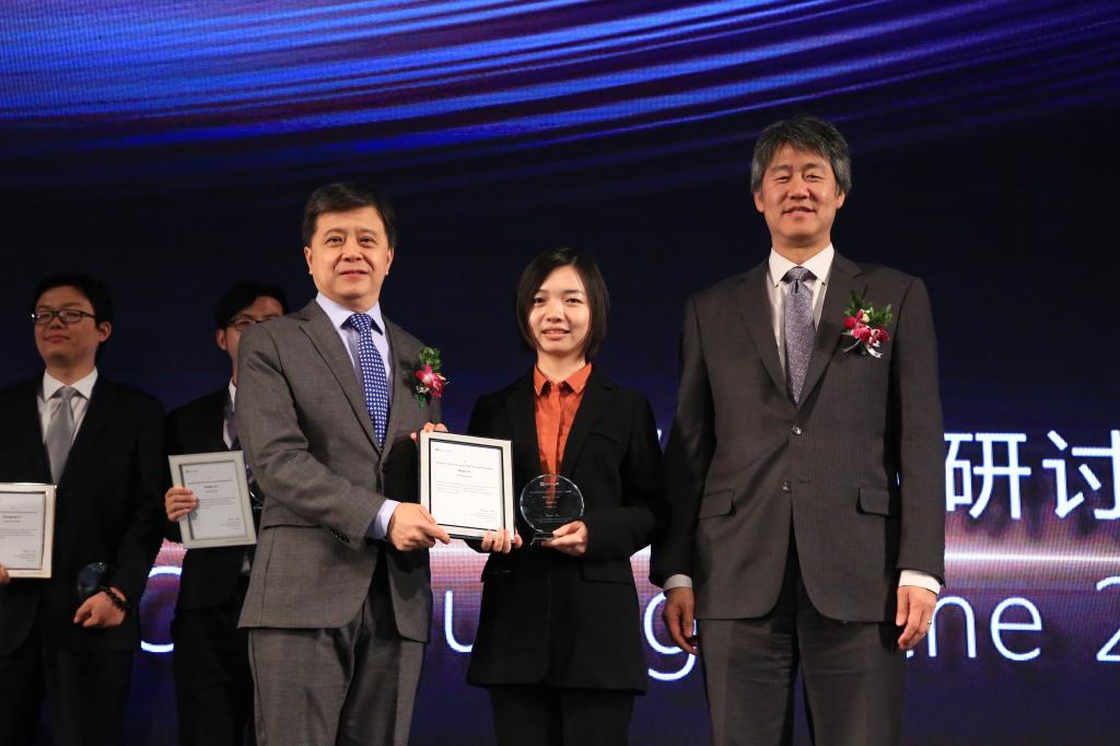 During the 19th Symposium of the 21st Century Computing, Lu Xuan, together with nine other winners, accepted the award from Dr. Peter Lee, Global Senior Vice President of Microsoft Corporation and Dr. Xiaowen Hong, Chairman of R & D Group and Dean of Microsoft Research Asia. In addition, they were invited to have a discussion with Professor John Hopcroft, the winner of the 1986 Turing Award and Director of the Center for Frontier Computing Research Science of Peking University.