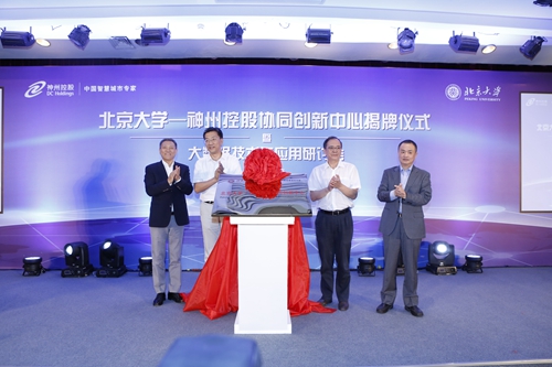 After the speech, Jinpeng Huai, Jianhua Lin, Wei Guo and Hong Mei jointly unveiled the Collaborative Innovation Center.