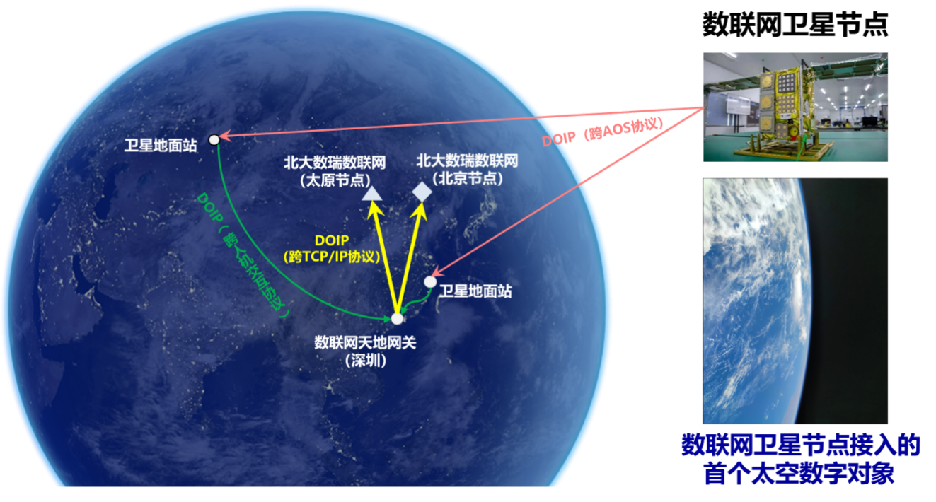 At 12:12 on December 7, 2021, the world's first digital networking satellite node led by Professor Huang Gang's research group of Peking University was launched from the Jiuquan Satellite Launch Center with the Baoyu satellite and successfully entered the scheduled orbit. After three months of commissioning and operation, the satellite node successfully connected the first batch of digital objects generated in space to Peking University ShuRui Internet of Data, which verified the connectivity and effectiveness of the satellite-ground link of the data network, marking the first step of the data network from the ground to space and the construction of a space-ground integrated digital space infrastructure.
