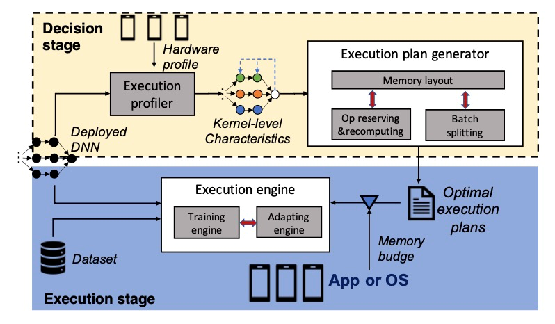 Endpoint machine learning has unique advantages in scenarios such as privacy computing and harsh environments (such as no network connection), but the limited computing, storage, and power resources of terminal devices also bring more challenges. The paper "Melon: Breaking the Memory Wall for Resource-Efficient On-Device Machine Learning" proposes the Melon memory adaptive optimization framework and its three innovative technologies, namely, memory allocation for deep learning, progressive recalculation strategy generation and dynamic memory budget adjustment, to achieve deep software definition of terminal memory management. Experiments show that compared with the baseline method, Melon can increase the training batch size by up to 4 times on the terminal device, which greatly shortens the convergence time of terminal training in federated learning scenarios, greatly reduces the overhead of context switching in dynamic memory scenarios, and greatly reduces energy consumption. The paper was published in ACM MobiSys 2022, and the first author is Wang Qipeng, a 2020 direct doctoral student. It is worth mentioning that this is another new progress made by the research group in software-defined methods for terminal machine learning systems after DeepCache (MobiCom 2018), ELSA (WWW 2019, the first WWW Best Paper Award for Chinese scholars), Elf (MobiSys 2020), and FLASH (WWW 2021).
